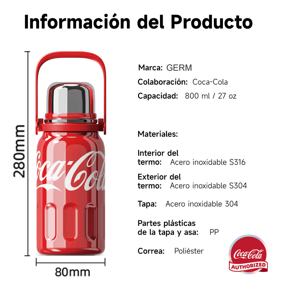 Este termo para camping de gran capacidad con licencia oficial de Coca-Cola, diseñado para una conservación prolongada del frío, es el compañero ideal para cualquier aventura.
